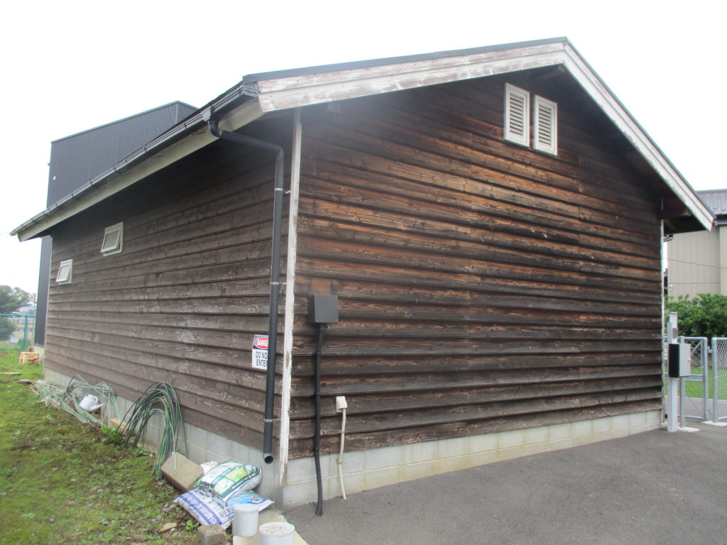 吉川市でガレージ塗装を行いました。色褪せがあり、白っぽく、チョーキングしていました。ダークブラウンで落ち着いた塗装で仕上げました。シャッター脇から中に水が入ってくるとお客様からご意見があり、雨仕舞い工事をして中に水が来ないようにさせていただきました。