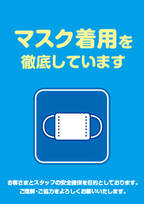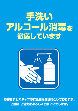 コロナウィルス対策として、お客様に安心していただけるように対策をしております。