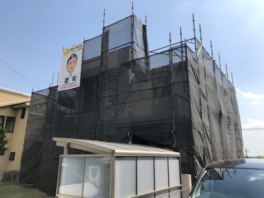 本日5月10日、三郷市新三郷ららシティで足場組立工事をさせていただきました。良い天気に恵まれて工事着工が無事完了致しました。